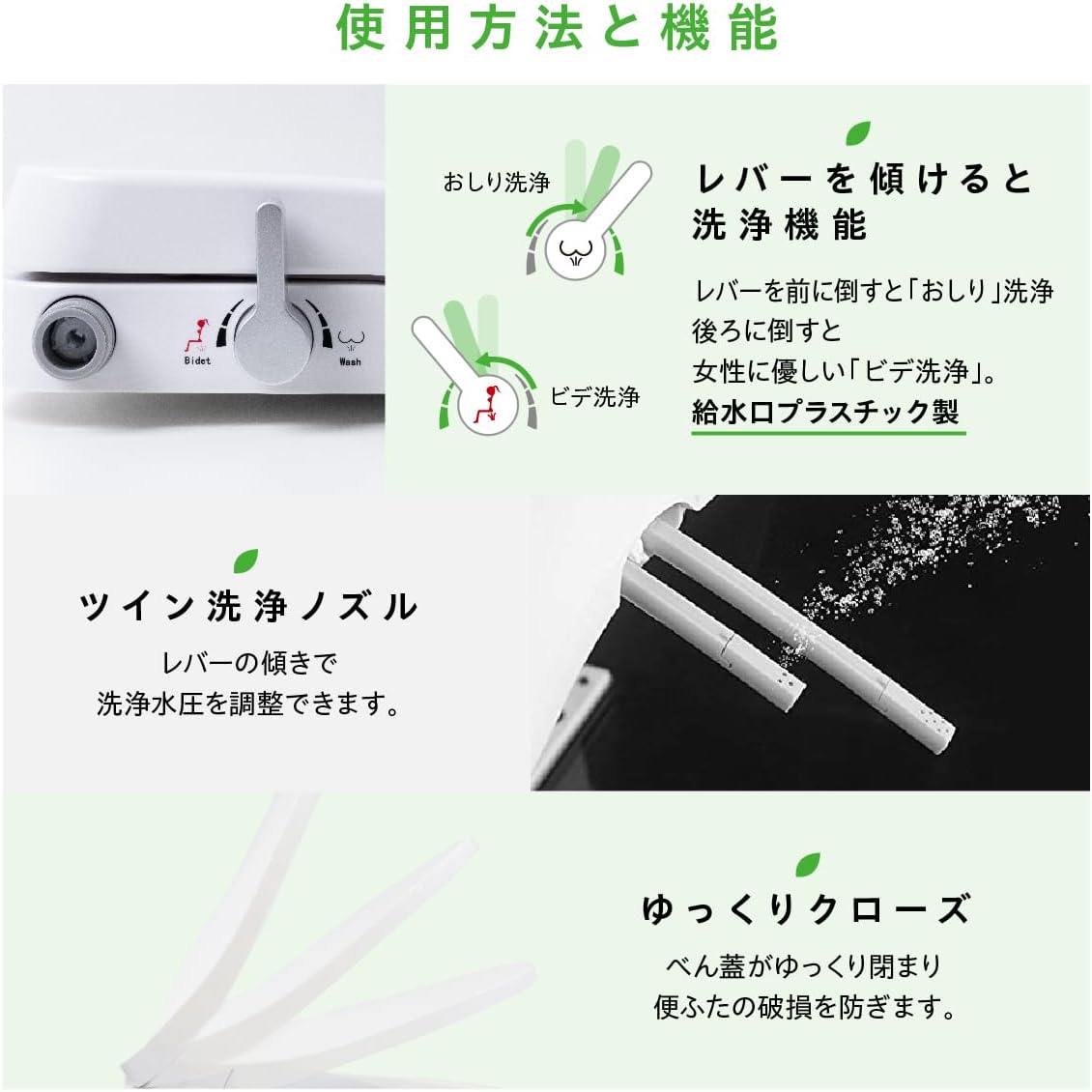 - ✓ 初めて洗浄便座を試したい方(複雑な電気配線不要、プラグ不要で水道接続のみのシンプルな仕様)